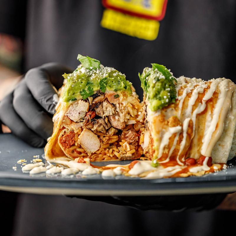 Half burritos stuffed with choice of rice, beans, up to 2 proteins, mixed cheese & garlic aioli.