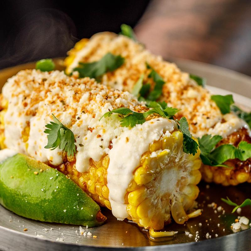 Corn on the cob drenched in truffle oil, and crema, topped with queso cotija, cajun and fresh cilantro.