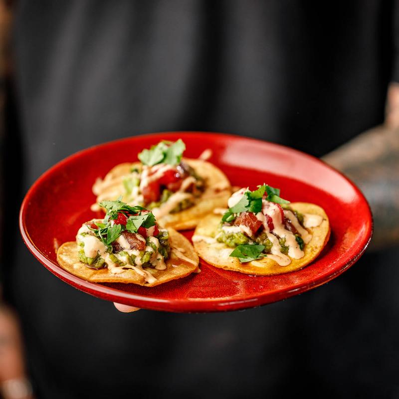 Crispy tostadas topped with fresh guacamole, ahi tuna, jalapenos pickled watermelon, cilantro & Miami heat sauce.
