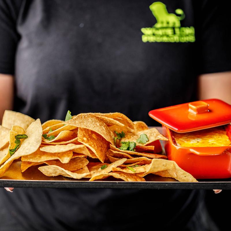 3 qt of lightly spiced melted cheese, served with tortilla chips | Feeds 10-25 guests.
