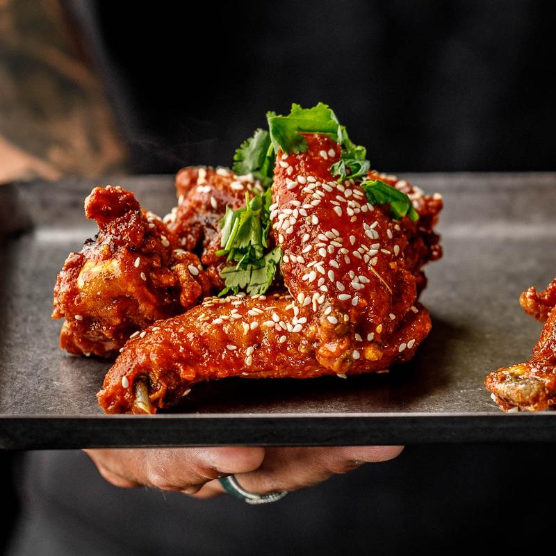 Wings tossed in a homemade ginger soy sauce topped with fresh cilantro.