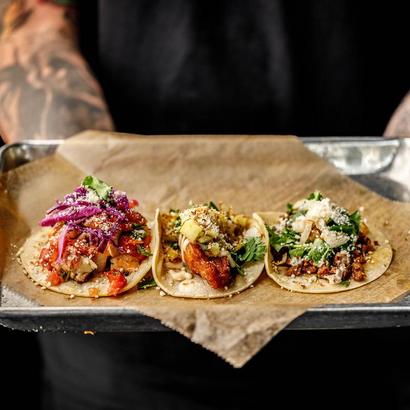 2 Tacos $10.00 | 3 Tacos 14.00 • Proteins: Ground Beef | Jerk Chicken | Carnitas | Churrasco | Carne Asada | Pork Belly | Lemon Pepper Fish Shrimp | Fried Shrimp | Queso Frito • Pick your style • House: Pico De Gallo | Pickled Cabbage | Queso Cotija & Sauce • Pastoreado: Fresh Cilantro | Cajun Pineapples | Sautéed Onions | Garlic Aioli • Baja Nota: Coleslaw | Pickled Onions | Fresh Cilantro & Alabama Sauce • Buffalo: Melted Cheese, Strip of Bacon & Homemade Buffalo Sauce • Street: Fresh Cilantro | Sautéed Onions | Crema & Queso Cotija • Tortilla: Corn Flour Tostada Lettuce Wrap